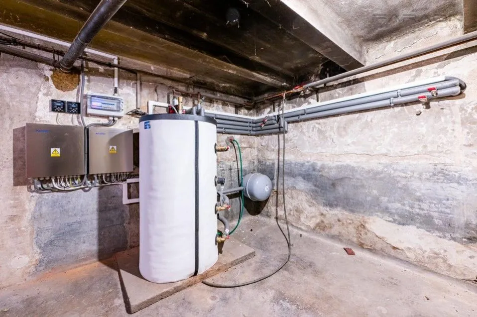 Vytápění je zajištěno dvěma novými tepelnými čerpadly, nová zateplená fasáda, izolační trojskla bez hluku,