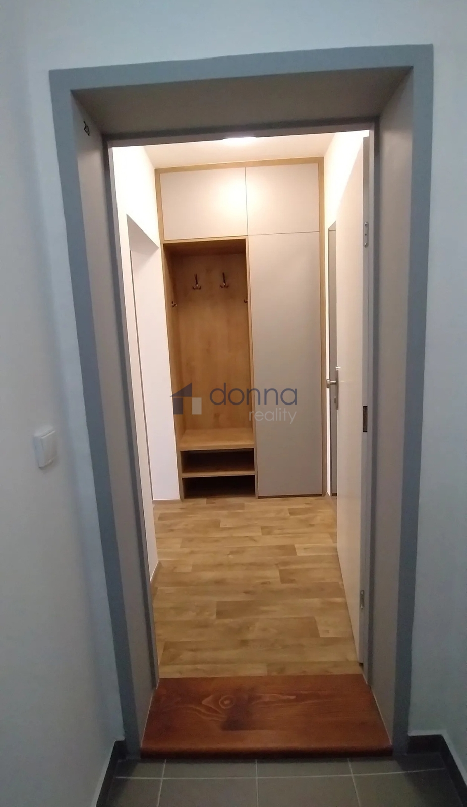 V předsíni a chodbě jsou prostorné vestavěné skříně.