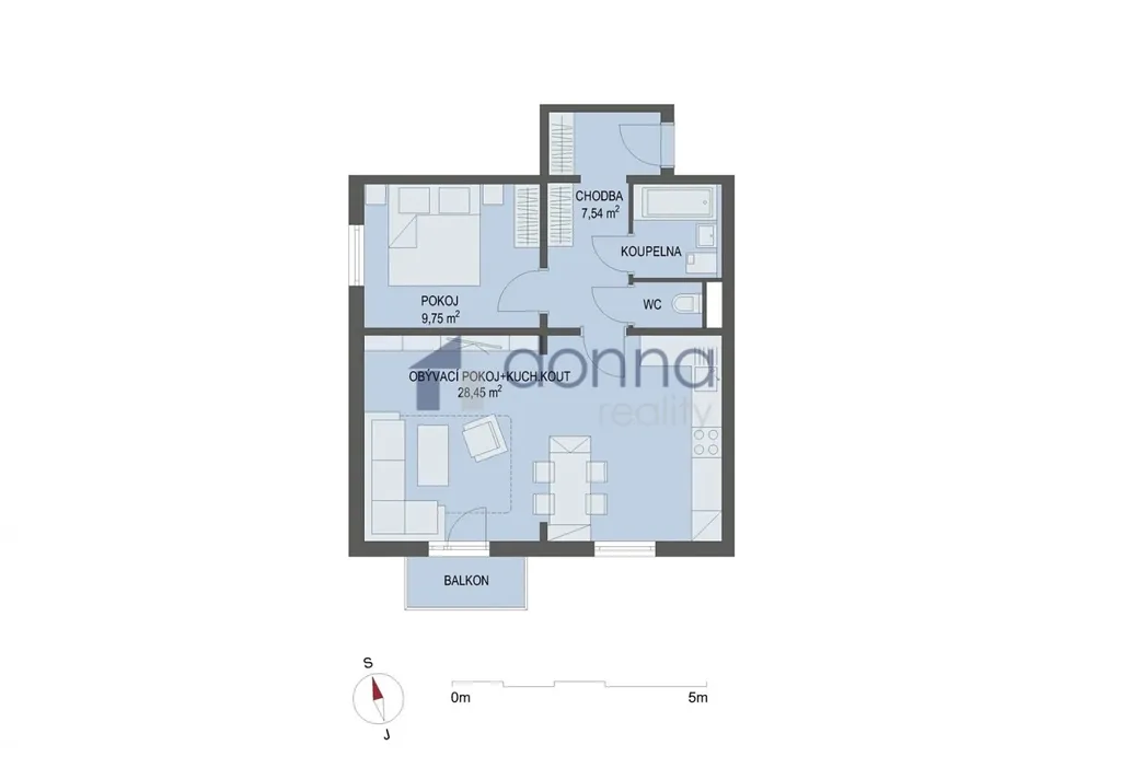 Z chodby je vstup do ložnice, toalety a koupelny. Součástí bytu je skladovací kóje.