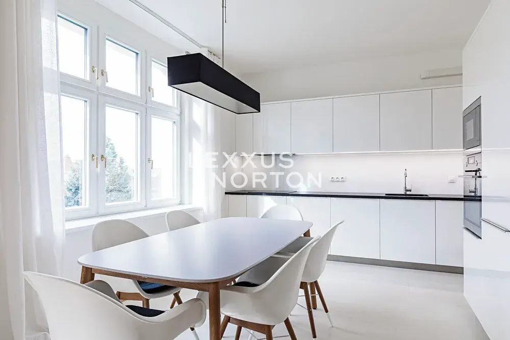 Nabízíme k pronájmu částečně zařízený byt 4+kk o celkové výměře 120 m2 s terasou (8 m2) nacházející se ve druhém nadzemním podlaží zrekonstruované prvorepublikové vily bez výtahu, v atraktivní lokalitě Prahy 10 - Vinohrady, v blízkosti parků a se skvělou dopravní infrastrukturou.
