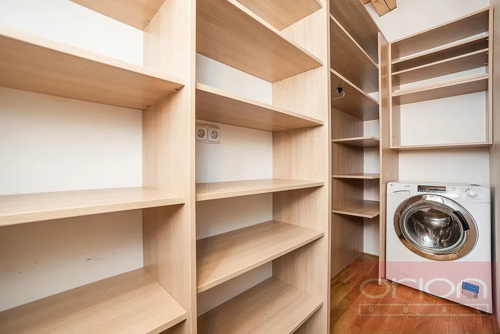 v nižším patře obývací pokoj spojený s jídelní částí a s plně vybavenou kuchyní (lednice s mrazákem, myčka, elektrická trouba, sklokeramická deska), ložnici, koupelnu s vanou, samostatnou toaletu a komoru s pračkou. V horním patře je galerie, ložnice, koupelna se sprchovým koutem a toaletou, velká terasa orientovaná do vnitrobloku. Na podlahách jsou parkety a dlažba. Tento hezký byt nabízí klidné bydlení na Praze 5, pouhých pár minut pěšky je nákupní centrum Nový Smíchov, stanice metra a tramvají Anděl, restaurace, obchody. Pro procházky a sportovní vyžití jsou nedaleko Petřínské sady, Smíchovská náplavka, park Kampa, Dětský ostrov s mnoha dětskými hřišti, sportovní centrum Erpet.