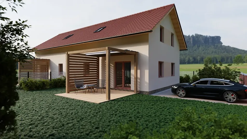 Nabízíme samostatně stojící rodinný dům o dispozici 5+kk, který v sobě spojuje moderní architekturu, vysokou kvalitu provedení a energetickou úspornost, a zároveň přirozeně zapadá do nádherné krajiny CHKO Kokořínsko.