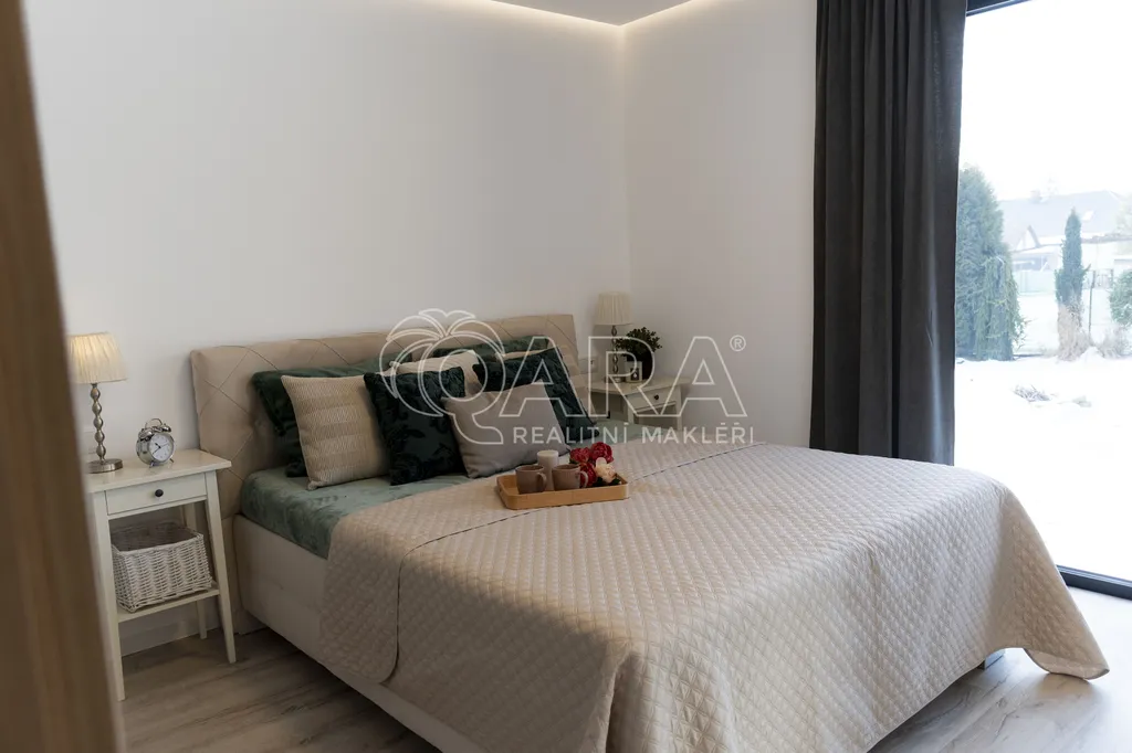 Interiér domu je navržen v moderním a nadčasovém stylu s důrazem na kvalitu a funkčnost. Dům se prodává včetně vybavení, takže umožňuje nastěhování bez nutnosti dalších investic a zajišťuje maximální pohodlí hned od prvního dne.