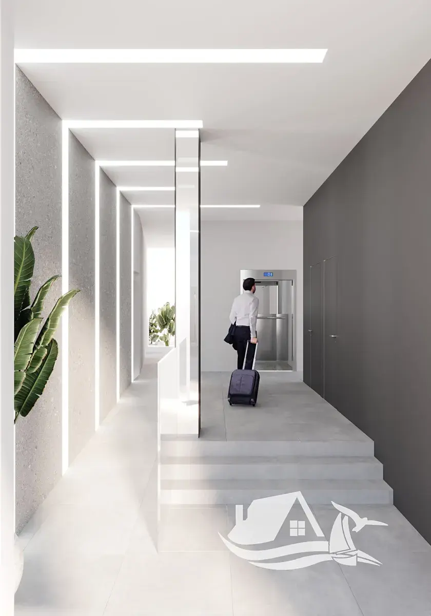 Interiéry jsou laděné moderně, podlahy z porcelánové kameniny působí elegantně a jsou snadno udržovatelné, dispozice s 2 nebo 3 ložnicemi a dvěma koupelnami přizpůsobí bydlení různým životním etapám. Vestavěné skříně poskytují promyšlené úložné řešení a plně vybavená kuchyně se spotřebiči usnadní každodenní život i víkendové vaření s hosty.
