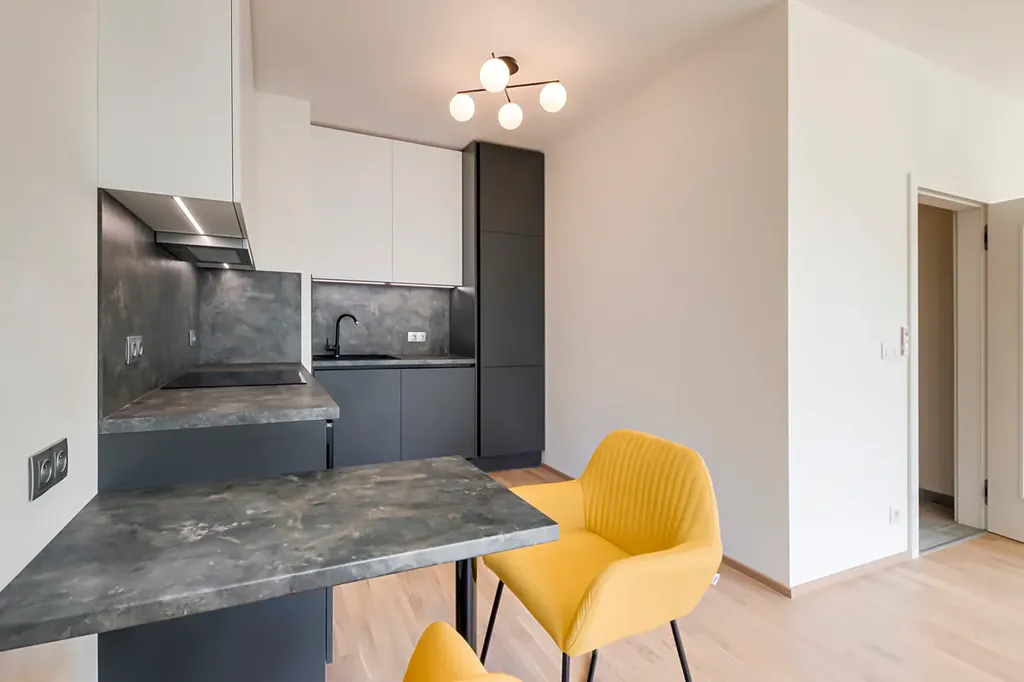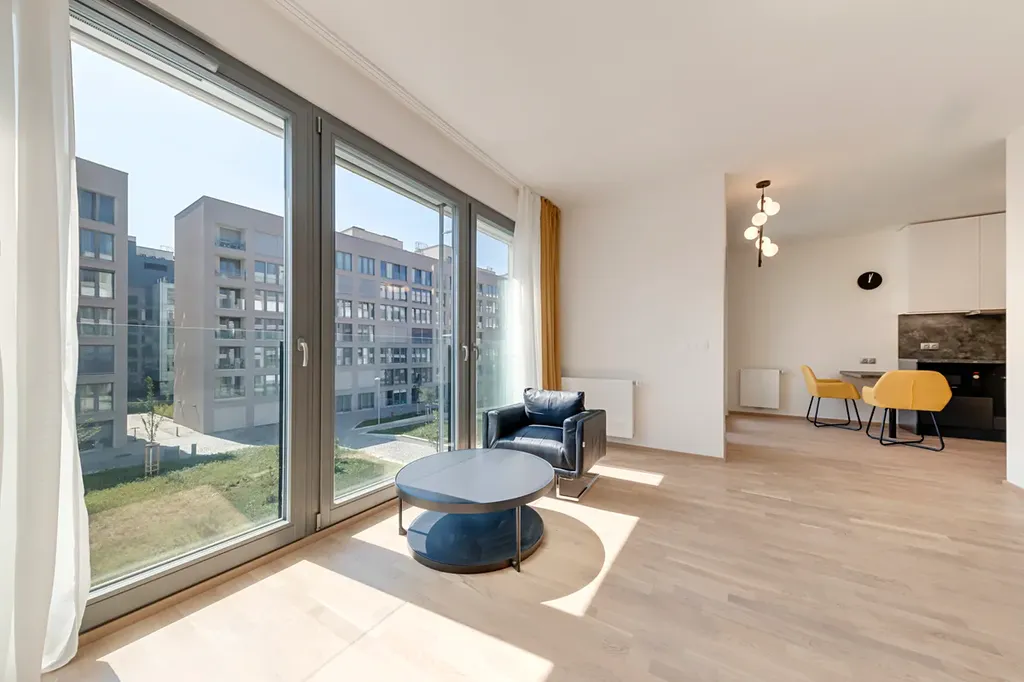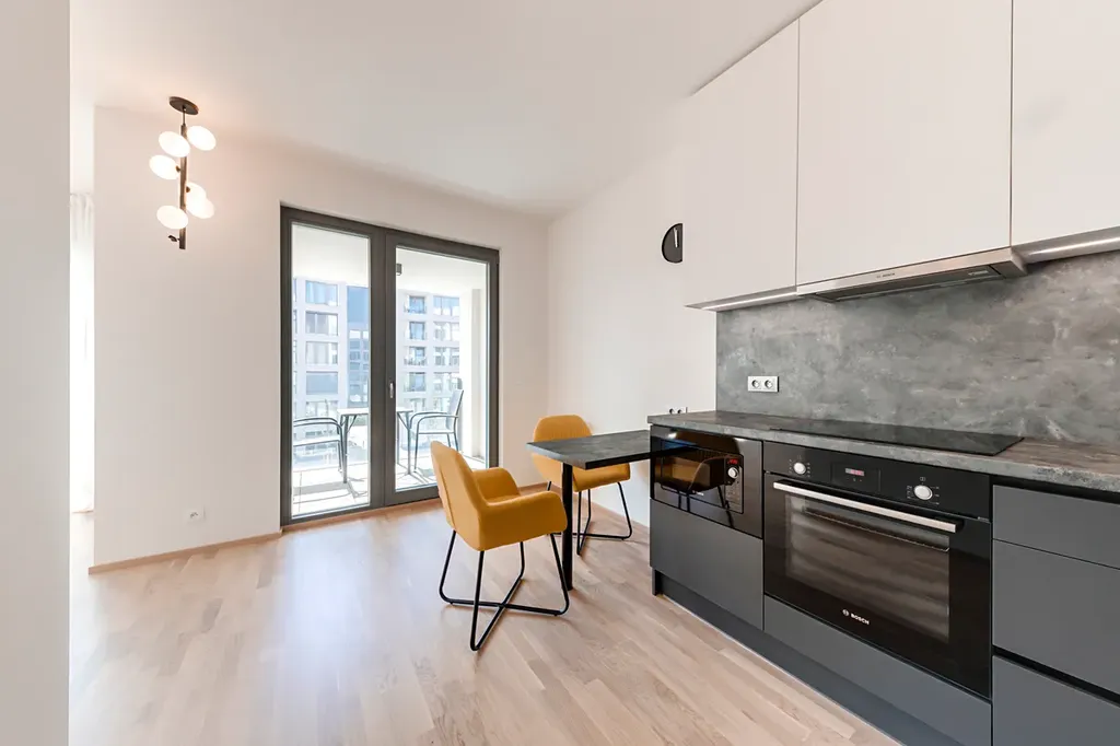 Nabízíme k dlouhodobému pronájmu kompletně zařízený byt 1+kk, 40 m² s lodžií 5 m², v novém rezidenčním projektu Port Karolina, v ulici Breitfeldova 709/17, Praha 8 - Karlín, 186 00, ve 3. patře budovy.
