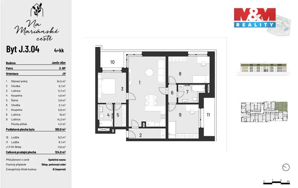 Máte jedinečnou šanci dostat k bytu 4+KK GARÁŽOVÉ STÁNÍ ZDARMA!! Nabízíme poslední byty ihned k nastěhování v nejžádanější Rezidenci Na Mariánské cestě inspirovaná skandinávským stylem, která získala ocenění Projekt roku! Ideální místo pro rodiny s dětmi, páry, jednotlivce i starší generaci, kteří si chtějí užívat klidné a harmonické prostředí. Pečlivě navržené byty poskytují maximální pohodlí, vzdušnost a funkčnost, zatímco okolí rezidence nabízí široké možnosti relaxace i aktivního trávení volného času. K dispozici je workoutové hřiště, komunitní zahrádka i sdílené ohniště, kde můžete trávit příjemné chvíle s rodinou a sousedy. Bezpečné a pohodlné parkování zajistí vnitřní parkovací stání. Rodiny ocení bezpečné prostory pro dětské hry, zatímco ti, kteří hledají klid a pohodu, najdou ideální zázemí pro odpočinek. Komunitní prostředí podporuje přátelská setkání, ať už u odpolední kávy, grilování nebo při zahradničení. Rezervujte si svůj vysněný byt!