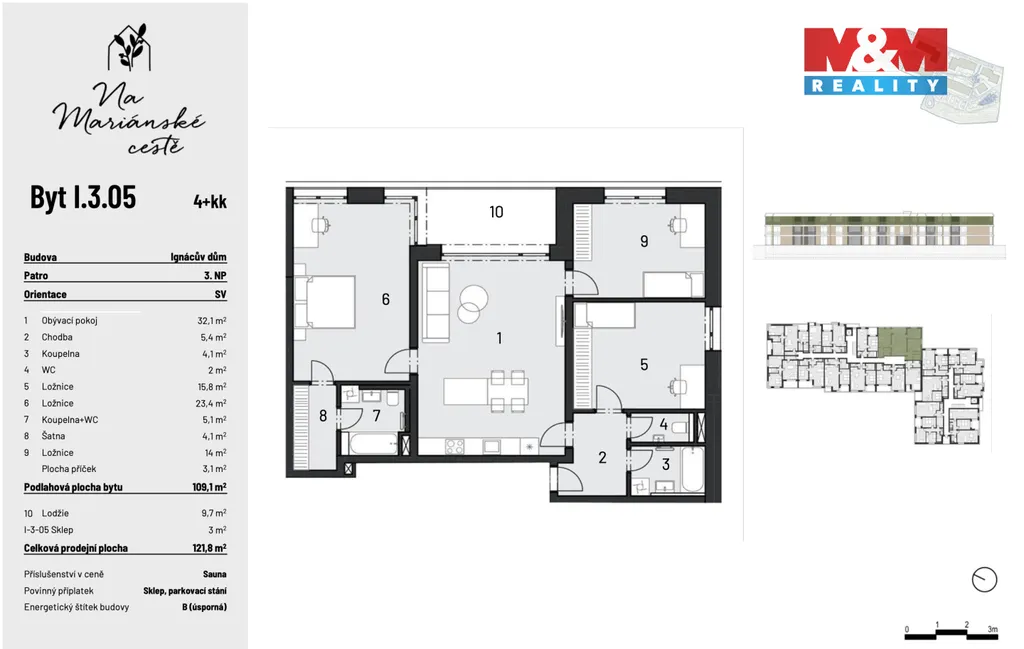 Máte jedinečnou šanci dostat k bytu 4+KK GARÁŽOVÉ STÁNÍ ZDARMA!! Nabízíme poslední byty ihned k nastěhování v nejžádanější Rezidenci Na Mariánské cestě inspirovaná skandinávským stylem, která získala ocenění Projekt roku! Ideální místo pro rodiny s dětmi, páry, jednotlivce i starší generaci, kteří si chtějí užívat klidné a harmonické prostředí. Pečlivě navržené byty poskytují maximální pohodlí, vzdušnost a funkčnost, zatímco okolí rezidence nabízí široké možnosti relaxace i aktivního trávení volného času. K dispozici je workoutové hřiště, komunitní zahrádka i sdílené ohniště, kde můžete trávit příjemné chvíle s rodinou a sousedy. Bezpečné a pohodlné parkování zajistí vnitřní parkovací stání. Rodiny ocení bezpečné prostory pro dětské hry, zatímco ti, kteří hledají klid a pohodu, najdou ideální zázemí pro odpočinek. Komunitní prostředí podporuje přátelská setkání, ať už u odpolední kávy, grilování nebo při zahradničení. Rezervujte si svůj vysněný byt!