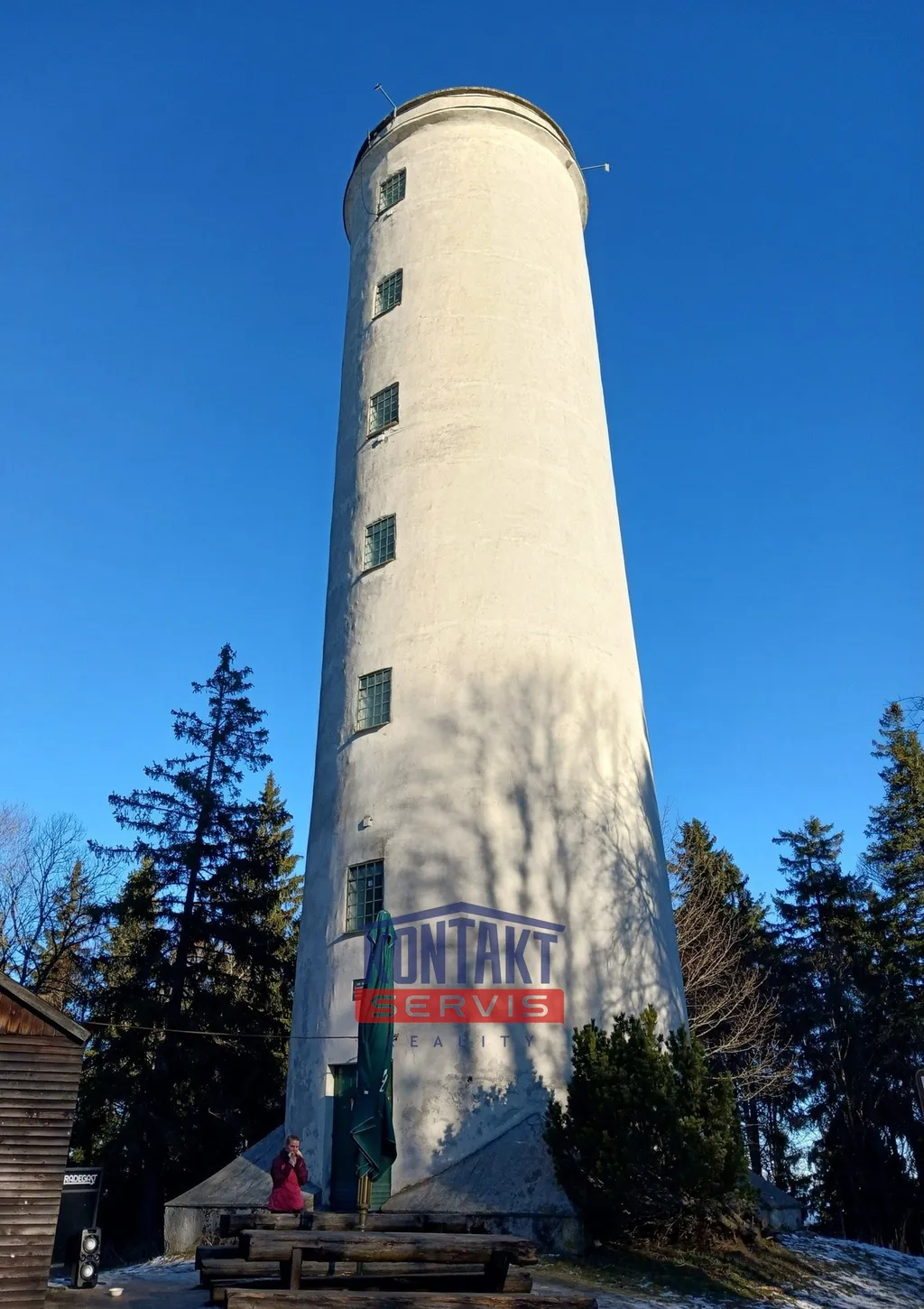 1,5 km vzdálená kamenná rozhledna Libín postavena roku 1883