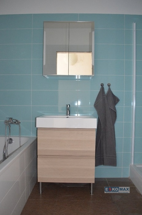 Dispozice bytu: vstupní chodba, kuchyně, 3× pokoj (obývací pokoj + 2 pokoje), koupelna s vanou i se sprchou a samostatné WC.