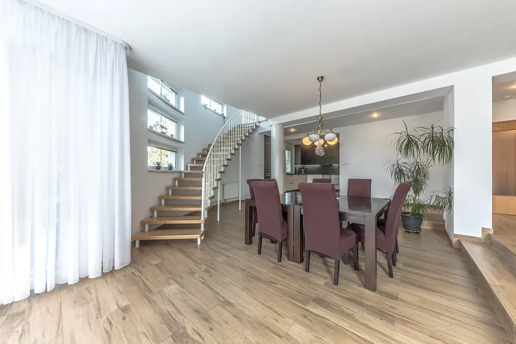 Prostorný obývací pokoj s jídelnou a moderní kuchyní