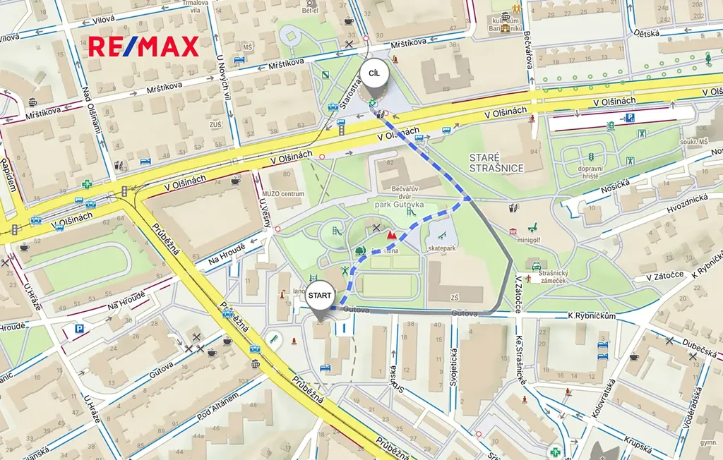 Velkou předností nemovitosti je také její samotná lokalita. Bytový dům se nachází přímo naproti parku Gutovka, kousek od domu naleznete mj. základní školu, obchody, restaurace, sportoviště a další služby. Stanice metra Strašnická se nachází pouhých 7 minut chůzí od domu ! , případně lze využít i tramvajové spojení za domem.