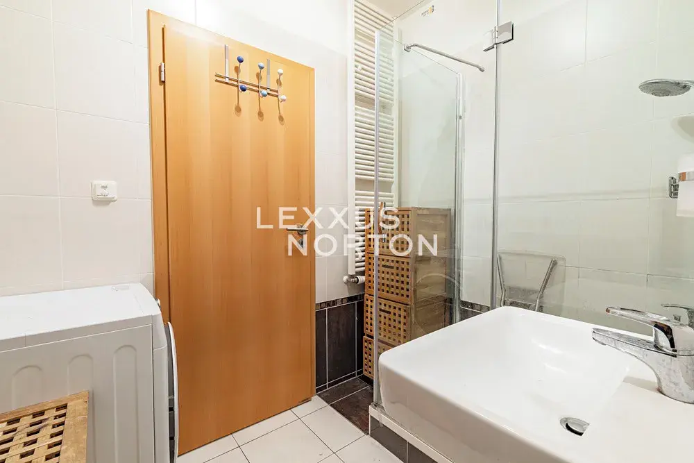Kuchyňský kout disponuje indukční sklokeramickou deskou, troubou, lednicí, mrazákem a zúženou myčkou nádobí. V koupelně se nachází sprchový kout, toaleta a pračka. V obývacím pokoji je oddělená spací část, ve které se nachází manželská postel. V bytě se nachází předokenní žaluzie a roleta clonící jižně orientovaný balkon.