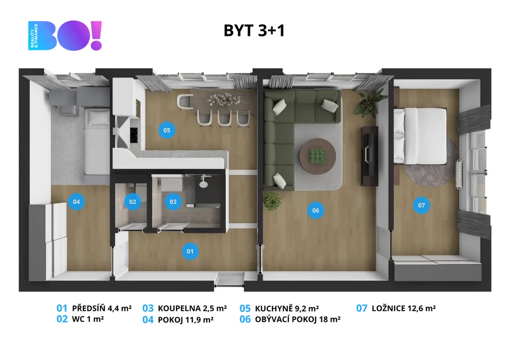 BO! Reality s potěšením představuje slunný byt 3+1 o výměře 60 m² na ulici Nádražní v Ostravě, kde můžete začít psát svůj nový příběh.