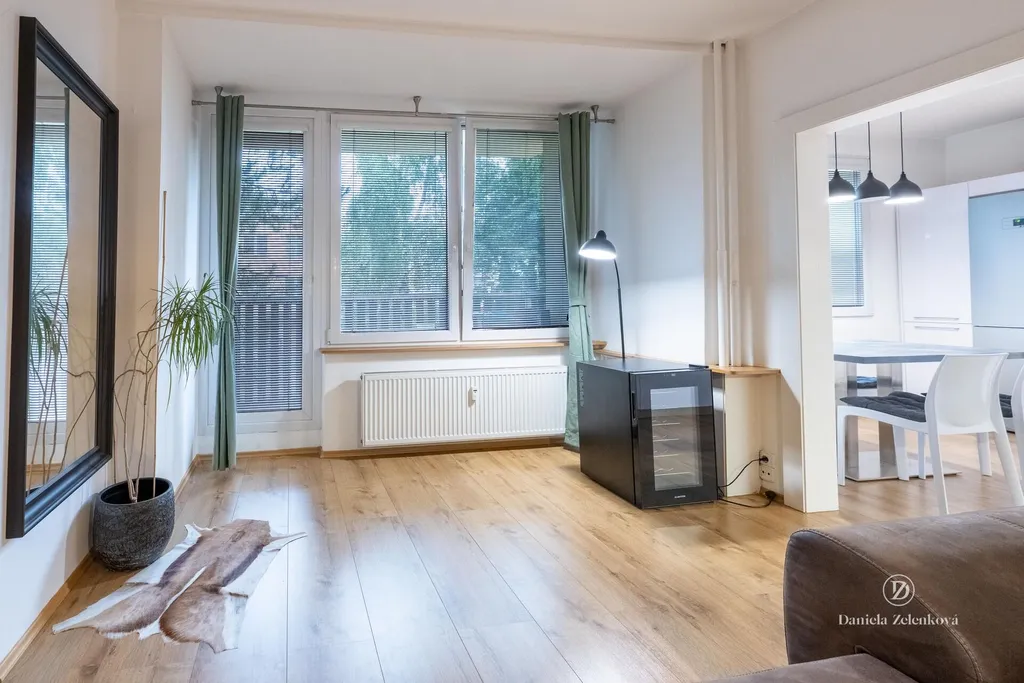 Byt působí světlým a příjemným dojmem, jeho součástí je také lodžie, kde si můžete užít klidné posezení. Kuchyňská linka se spotřebiči je součástí nabídky a po domluvě je možné ponechat i další zařízení . K bytu náleží sklep.