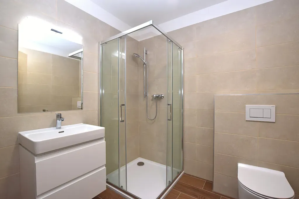 • 2 koupelny (sprchový kout + toaleta / vana + toaleta)