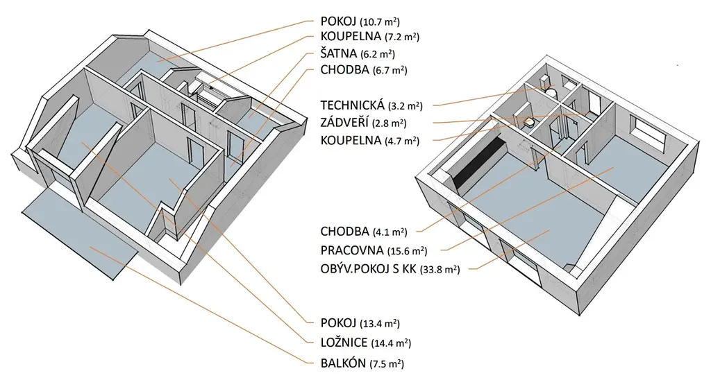 • Terasa krytá balkonem 12,5 m² a zahrada 116 m²