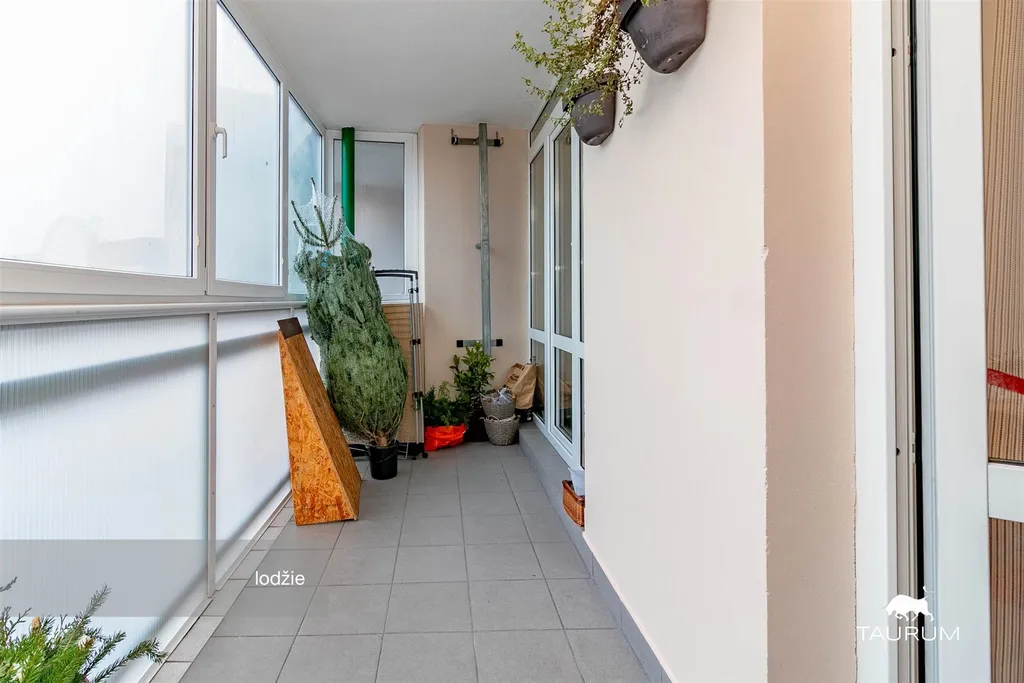 Poslední patro domu zajišťuje klid a soukromí. Orientace oken je na východní stranu (ložnice, kuchyň, pokoj) a západní stranu (lodžie se vstupy do zbylých 2 pokojů).