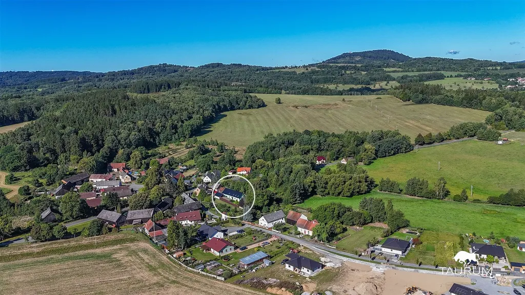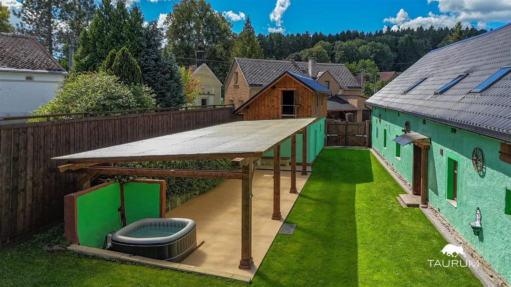 Jedná se o původní vesnické stavení, u kterého stojí druhá stavba (garáž v přízemí, obytný prostor v patře a navazující terasa s pergolou) také po rekonstrukci. Další stavba je 3 patrová krásná stodola z roku 1908 s bočním polozapuštěným sklepe. Rozmístění staveb i samotné umístění domu a zahrady zajišťuje jako velmi dobrý přístup, tak i soukromí a klid.