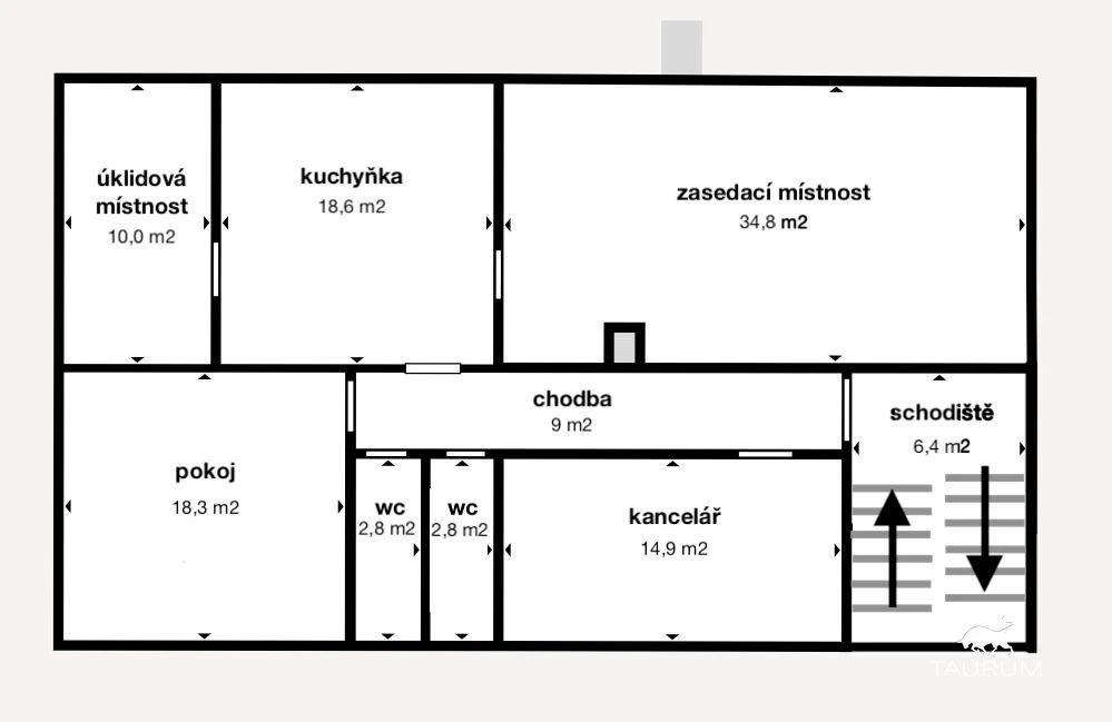 1 dvoupodlažní částečně podsklepená zděná administrativní budova s kancelářemi a zázemím (šatny, sprcha, wc, kuchyňka) o celkové podlahové ploše 285 m2, budova je ve vynikajícím stavu