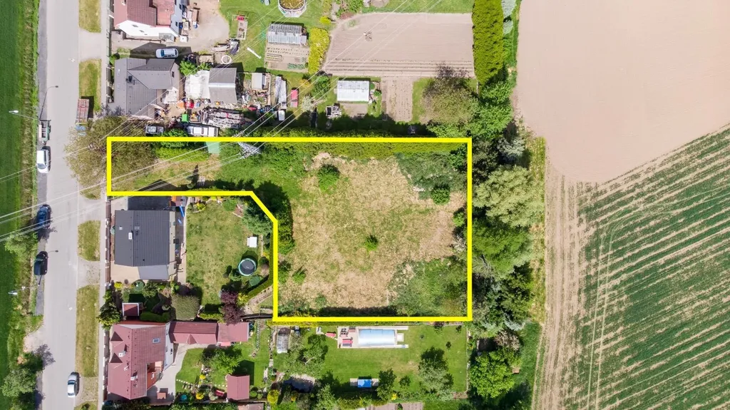 Stavební pozemek o rozloze 1.929 m2 leží v klidné zástavbě mezi ostatními pozemky s rodinnými domy. Pozemek je krytý ze všech stran vzrostlou vegetací (tůje, keře, stromy) a poskytuje dokonalé soukromí. Vzhledem ke tvaru pozemku na něj není vidět ani z komunikace vedoucí podél zástavby. Na pozemek jsou přivedeny všechny inženýrské sítě: elektřina, kanalizace, voda, plyn. Navíc je na pozemku studna.