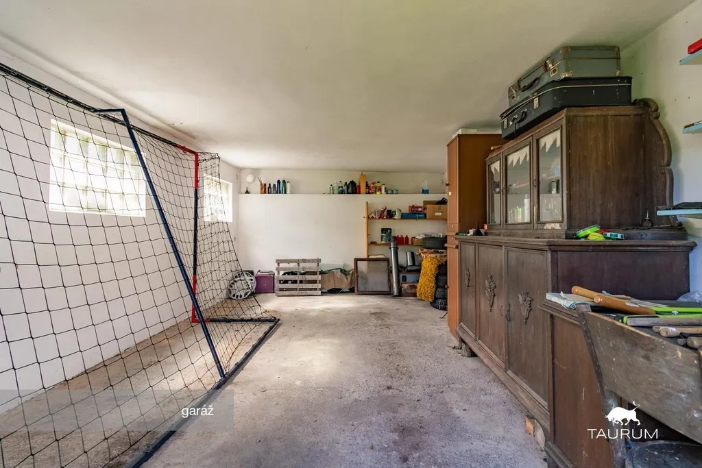 V levé části je uhelna, bývalý sklep s lednicí dříve sloužící jako zázemí pro hostinec, stodola a bývalé stáje, na které navazuje prostorná garáž. Nad obytnou částí, hostincem, průjezdem i stájemi se nachází rozsáhlé půdní prostory, nabízející další možnosti rozšíření obytného prostoru.