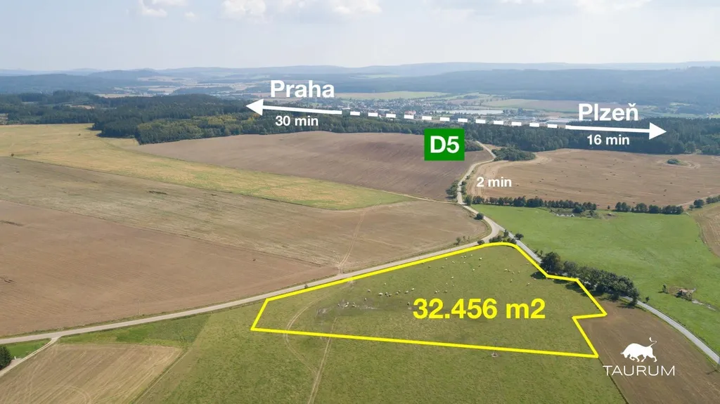 Představujeme k prodeji pozemek o výměře 32.456 m2 u obce Těškov na Rokycansku 2 minuty jízdy od D5.