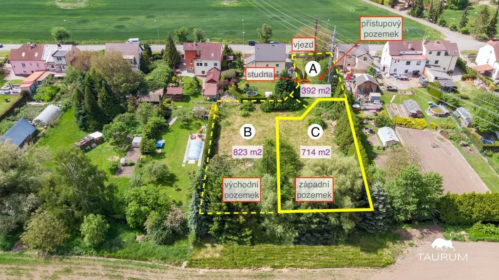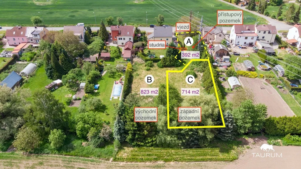 pozemek C (západní) = inzerovaný pozemek, výměra 714 m2;