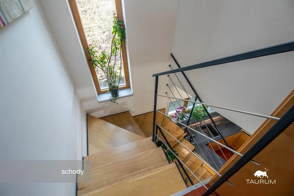 • Schodiště je ocelové s dřevěnými schodnicemi