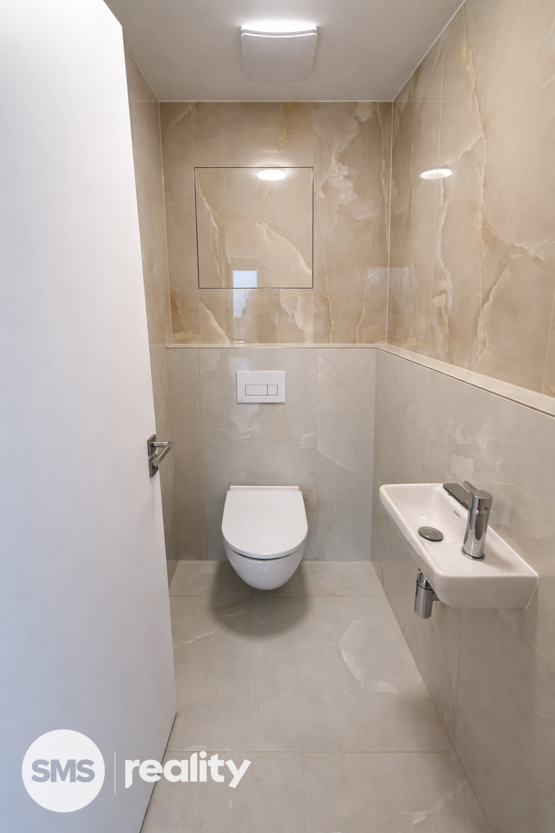 Součástí bytu jsou předokenní žaluzie s možností ovládání přes mobilní telefon, které vám zajistí maximální komfort a soukromí. Kuchyňská linka na míru s kompletními vestavěnými spotřebiči zn. Bosch (myčka, trouba, lednice s mrazákem, indukční varná deska). Do bytu vstupujete prostornou chodbou o výměře 9,8 m². Obývací prostor s kuchyní má výměru 28,6 m², ložnice 14,2 m². Výhodou je prostorná koupelna s vanou 5 m² a samostatná toaleta 2 m², šatna 5 m².