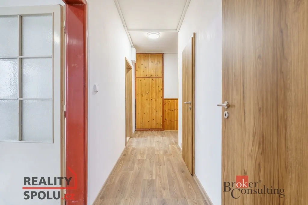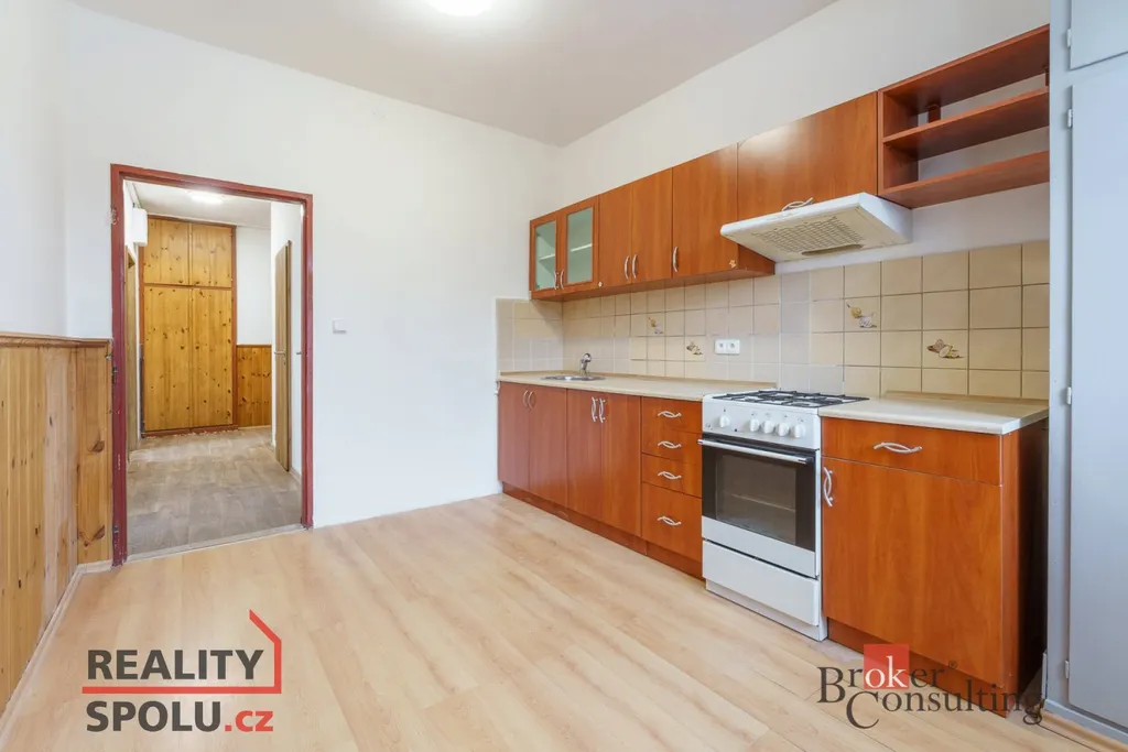 Byt právě prošel částečnou rekonstrukcí – působí čistě, moderně a je připraven k nastěhování. Dispozice je praktická: samostatná kuchyně, dva neprůchozí pokoje, koupelna a oddělené WC. Koupelna je řešena v moderním šedém tónu, včetně sprchového koutu a umyvadlové skříňky; toaleta je samostatná. Kuchyně je vybavena kuchyňskou linkou a spotřebiči, dostatek prostoru zůstává i pro jídelní stůl.