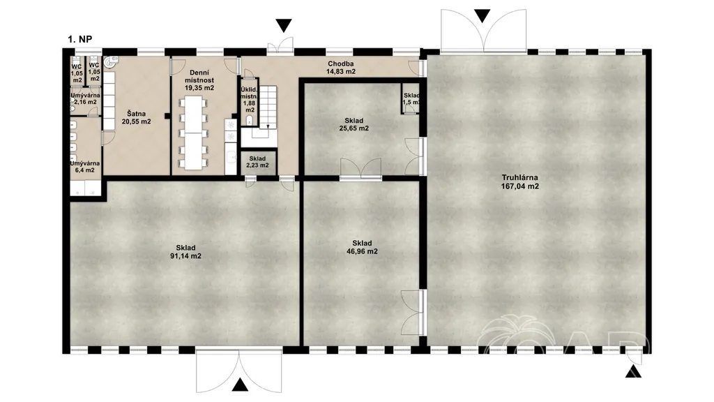 skladové a obslužné prostory