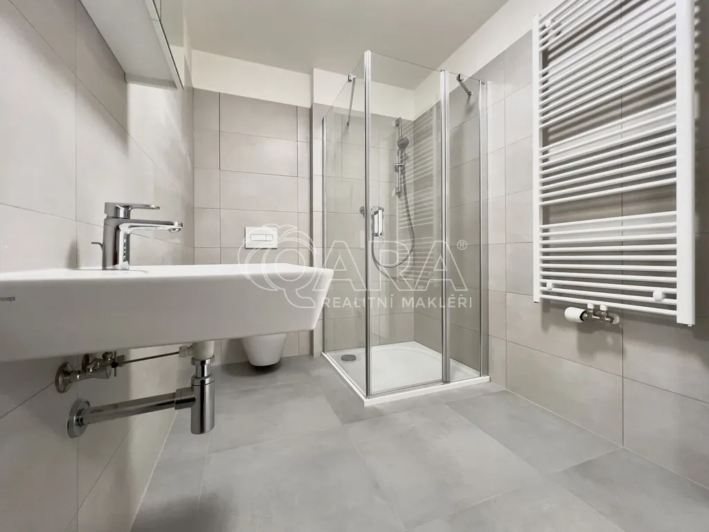 Bytová jednotka o výměře 37,1 m² se nachází ve 3. nadzemním podlaží novostavby z konce roku 2023 (dva výtahy jsou samozřejmostí). Byt se skládá z předsíně o výměře 6,9 m², ze které se dostaneme do obytné části o výměře 22,6 m², která je zařízena kuchyňskou linkou s elektrickou troubou, dvouplotýnkovou indukční varnou deskou a digestoří (další spotřebiče nebudou součástí nájmu). Z obytné části je přístupný balkon o výměře 3,2 m². Koupelna je přístupná z chodby a je vybavena sprchovým koutem, umyvadlem, skříňkou se zrcadlem a přípojkou na pračku. Dostatek místa na sušičku je samozřejmostí. WC je v koupelně. Byt se pronajímá jako nezařízený, tudíž si jej můžete vybavit podle svých vlastních představ. Garážové parkovací stání pro jedno auto (není podmínkou nájmu) je v 1. PP.