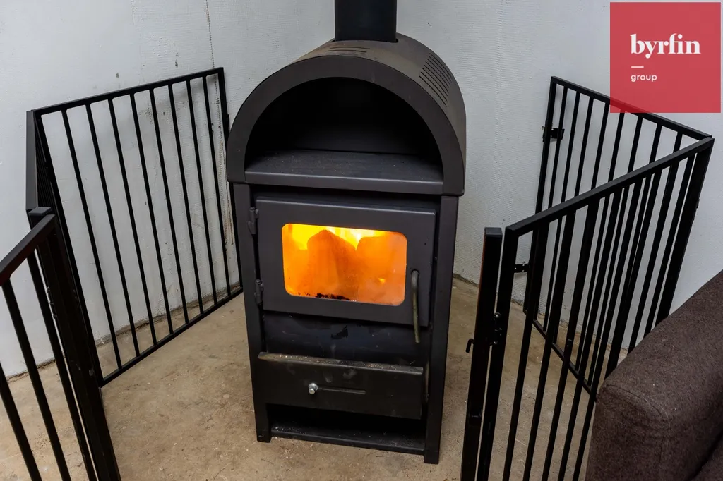 V rámci rekonstrukce došlo také k vyvložkování komínu. Komín je připraven na napojení nejen v přízemí, kde jsou napojena kamna, ale i do patra, což nabízí další možnosti vytápění a praktické využití dispozice. Aktuálně je dům vytápěn klimatizačními jednotkami, které zároveň zajišťují komfortní chlazení v letních měsících.
