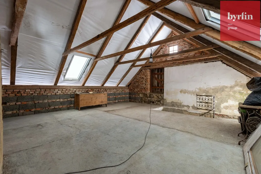 Dispozice nabízí již čtyři hotové místnosti a zároveň výrazný potenciál do budoucna. Majitelé již zahájili práce na rozšíření obytné plochy – v podkroví pod střechou je připraven prostor pro vybudování dalších obytných místností, například ložnice, dětského pokoje, pokoje pro hosty nebo druhého obývacího pokoje, a zároveň i možnost zřízení druhé koupelny. Dům tak může bez problémů vyhovět i větší rodině nebo vícegeneračnímu bydlení.
