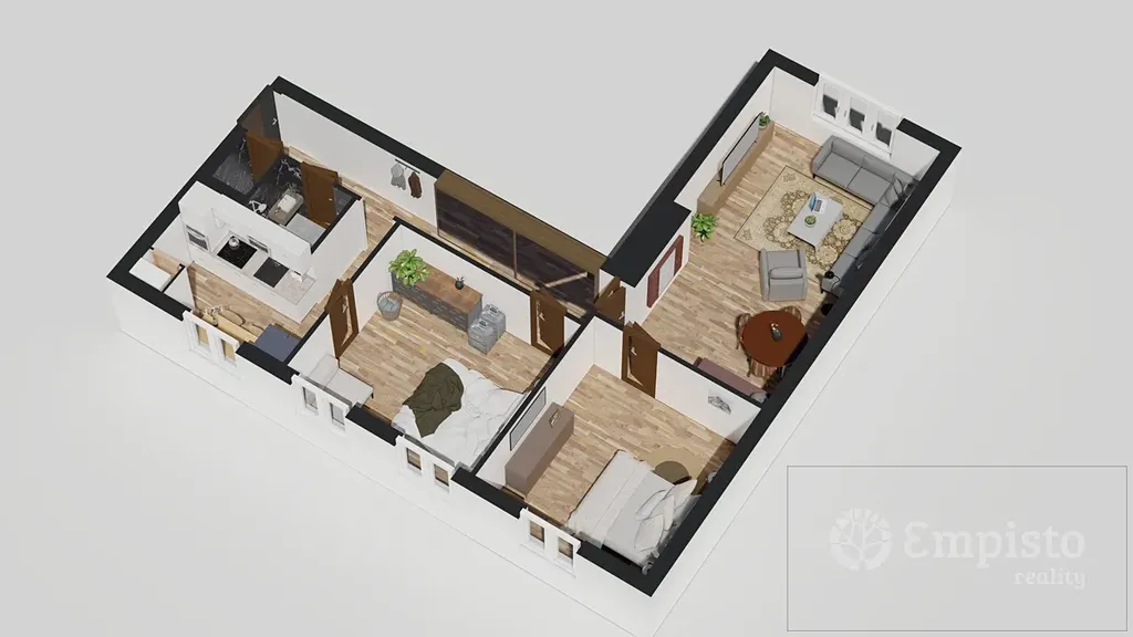 Nechte svou kreativitu volně plynout! Byt je v původním stavu a čeká, až ho proměníte v domov přesně podle svých představ. Pro inspiraci vám nabízíme dvě ukázky, jak by mohl vypadat. Jedna věc, na kterou se můžete spolehnout, je nová elektroinstalace.