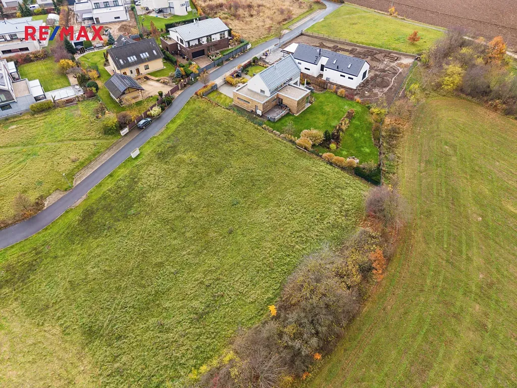 Pozemek má optimální výměru 1 760 m² a jeho tvar poskytuje značnou flexibilitu při umístění rodinného domu i zahradních úprav. Přístup je veden z místní asfaltové komunikace v obytné zóně. Na hranici pozemku jsou přivedeny všechny inženýrské sítě, včetně elektřiny, plynu, vodovodu i kanalizace, což výrazně usnadňuje a urychluje přípravu stavby. Součástí fotodokumentace jsou jak architektonické vizualizace, tak aktuální letecké záběry, které ukazují skutečný stav pozemku a jeho zasazení do okolní krajiny.