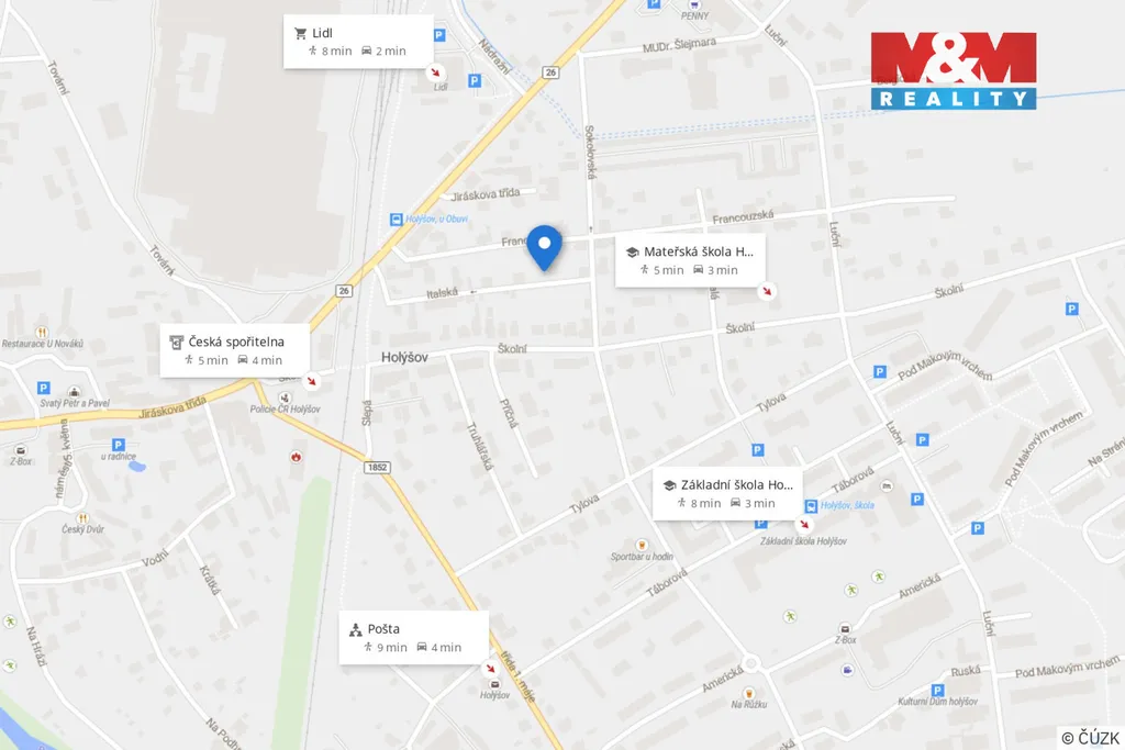 Velkou výhodou je klidná lokalita s výbornou dostupností veškeré občanské vybavenosti. V Holýšově se nachází MŠ i ZŠ, obchody, restaurace, lékař, lékárna, pošta i sportovní a volnočasové vyžití. Samozřejmostí je také dobré dopravní spojení, ať už vlakem nebo autobusem, s rychlou dostupností do Plzně a okolních měst.