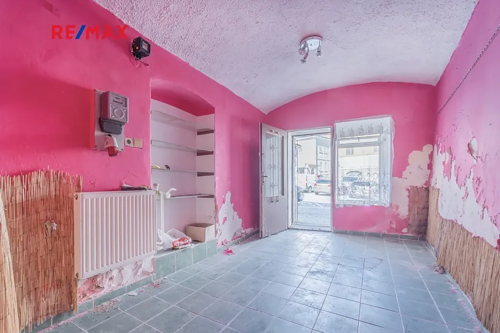 V přízemí se nacházejí dva obchodní prostory se samostatnými vstupy z ulice – menší a větší. K většímu prostoru náleží dva sklady, podzemní sklep a sociální zázemí jak pro zákazníky, tak pro personál. Prostory jsou v současnosti nevyužívané, po rekonstrukci mohou opět sloužit ke komerčnímu využití nebo být přizpůsobeny k bydlení.