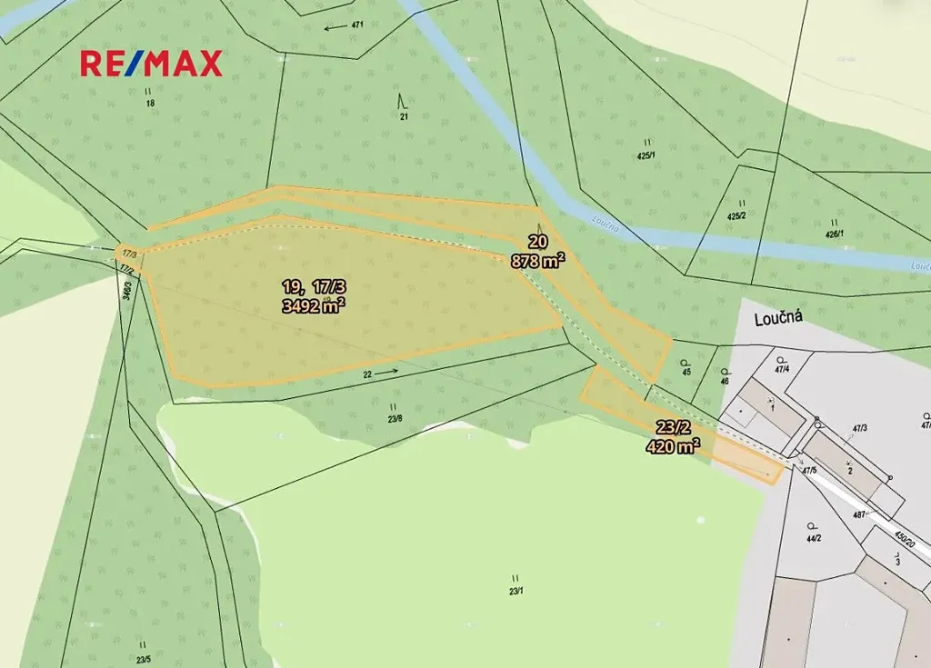 2) pozemek parc. č. 20 o evidované výměře 878 m², lesní pozemek;