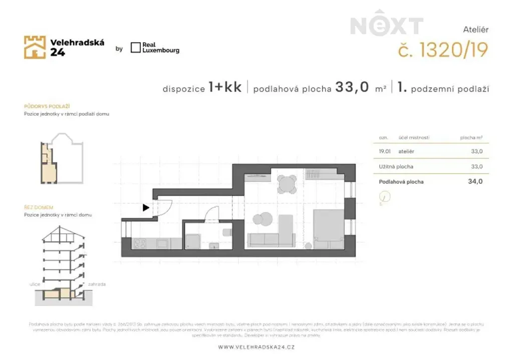 Chcete bydlet na skvělé adrese? Máme pro Vás krásný ateliér 1+kk, v činžovním domě, v jedné z nejžádanějších lokalit Prahy, na Vinohradech, nedaleko náměstí Jiřího z Poděbrad. Nabízíme k prodeji nově zrekonstruovaný ateliér 1+kk o celkové ploše 34 m², v 1. podzemním podlaží činžovního domu v projektu "Rezidence Velehradská". Vinohrady jsou vyhledávaná lokalita díky klidnému prostředí, zeleni a výborné dostupnosti do centra města. V okolí najdete veškerou občanskou vybavenost, včetně škol, obchodů, restaurací a kaváren. Zastávky MHD jsou v docházkové vzdálenosti. Projekt "Rezidence Velehradská" představuje bydlení s důrazem na komfort v jedné z nejžádanějších částí Prahy. Tento byt je ideální pro jednotlivce, mladé páry nebo jako zajímavá příležitost pro investory. V inzerci jsou použity reálné fotografie a vizualizace budoucího možného stavu. Součástí naší nabídky je kompletní servis, tedy právní služby a zajištění všech potřebných dokumentů, pomoc se zajištěním financování, pojištění nemovitosti i domácnosti, přepisy energií. Pouze u nás vám zajistíme moderní financování až na 30 let, bez ohledu na věk a prokazování příjmů, či nutnosti předkládat daňové přiznání (u podnikatelů). Zeptejte se nás a bydlete chytře! Bližší informace Vám ráda sdělím na osobní prohlídce bytu. Pro komunikaci uvádějte evidenční číslo zakázky N113484.