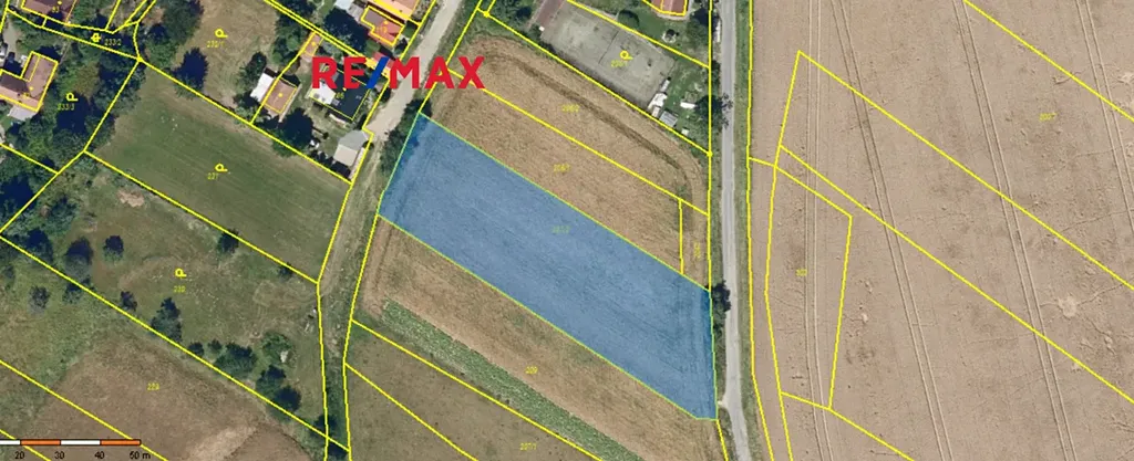 Dle platného územního plánu je přibližně 2/3 pozemku určeno k venkovskému bydlení, tedy k výstavbě rodinného domu, zbývající část je vedena jako plocha zemědělská. Přístup na pozemek je zajištěn z veřejné komunikace z obou stran, což zvyšuje komfort i budoucí využitelnost. Inženýrské sítě – elektřina, plyn, vodovod, kanalizace a telekomunikace – se nachází v dosahu u přilehlé komunikace, napojení je nutné řešit s jednotlivými správci sítí.
