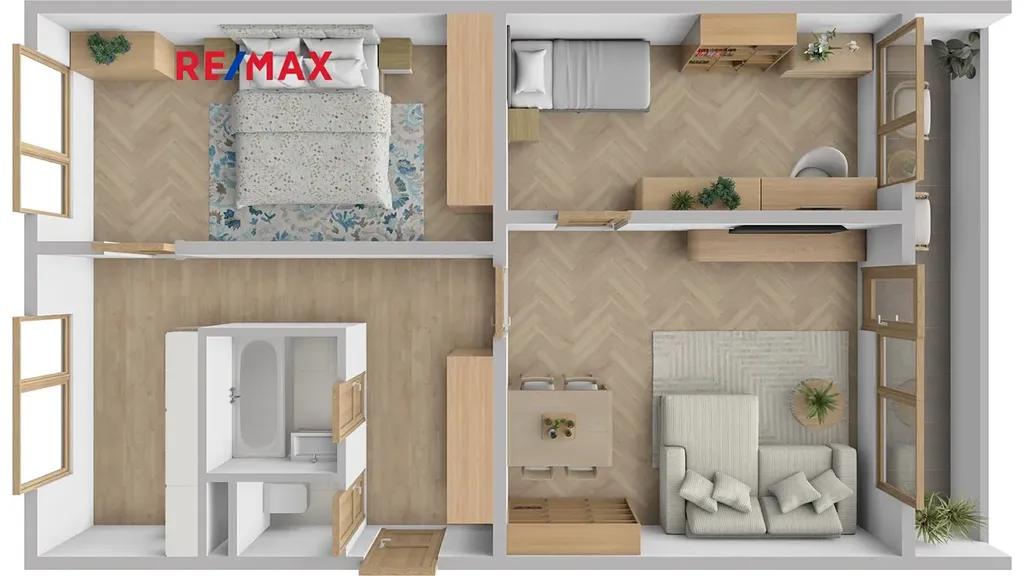 ✅ Dispozice bytu je tvořena vstupní chodbou, ze které vlevo vejdete do koupelny s vanou a vedlejšími dveřmi na samostatné WC. Vpravo je vstup do obývacího pokoje, který má přístup na velkou lodžii. Z pokoje je také přístupný druhý menší pokoj (ložnice, dětský pokoj). Z chodby vlevo je průchod do kuchyně se zachovalou linkou s dřezem a plynovým sporákem. Z kuchyně vpravo je vstup do třetího pokoje. Byt je převážně v původním stavu a rekonstrukcí si ho můžete zmodernizovat. Okna jsou nová plastová a dům je dobře udržovaný s novou fasádou.