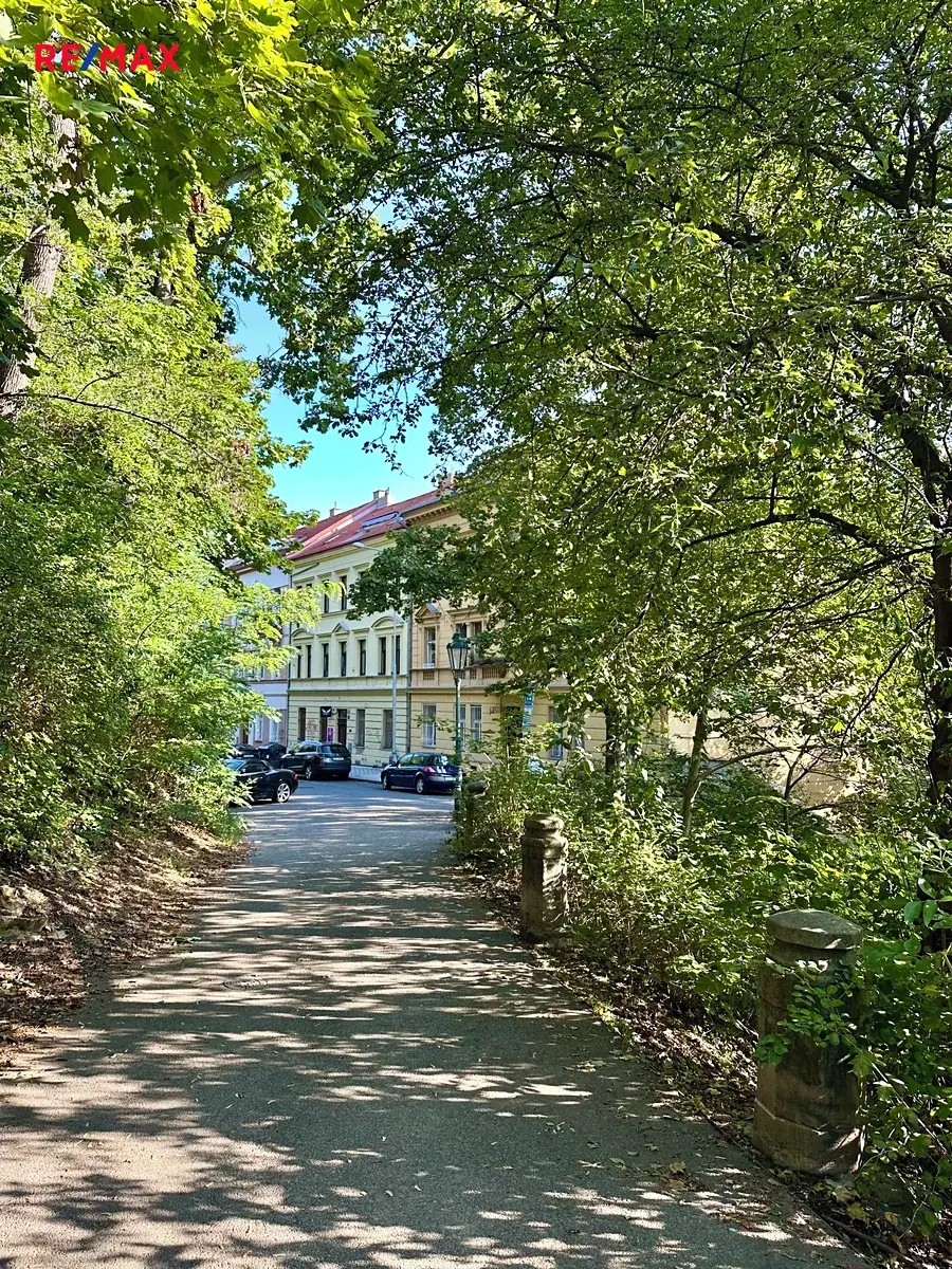 Hned naproti domu jsou rozlehlé Sady Na Skalce, ideální pro relaxaci, procházky i aktivní trávení volného času, což umocňuje atraktivitu této lokality.