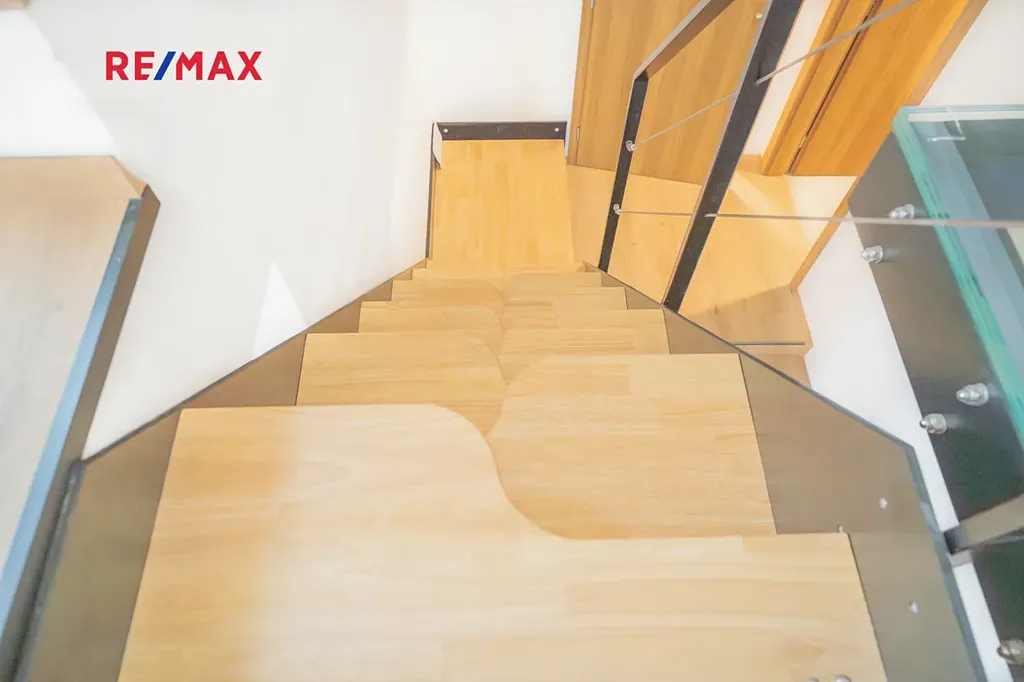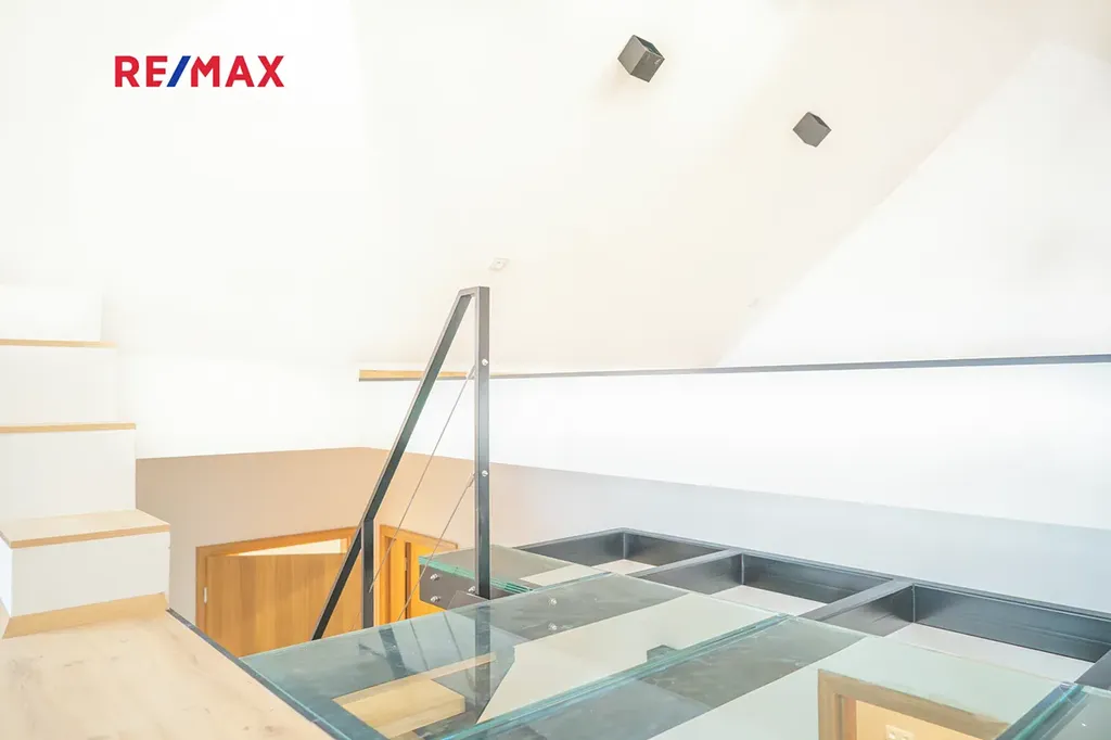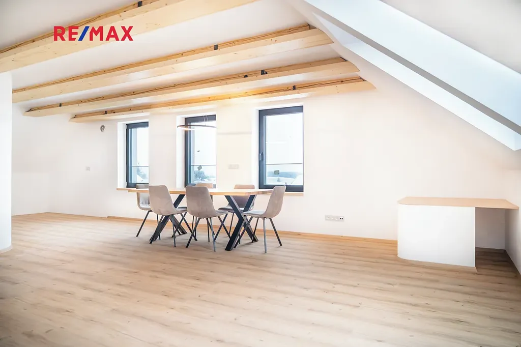 Na kuchyň navazuje stylový obývací pokoj, který v sobě krásně spojuje současný design a přiznané prvky dřeva — prostor působí vzdušně, ale zároveň příjemně útulně. V této části naleznete také samostatné WC, komoru a prostornou koupelnu s vanou i sprchovým koutem. Kromě toho jsou zde dva oddělené pokoje — skvělá volba pro dětské pokoje, pracovnu či hostinský pokoj.