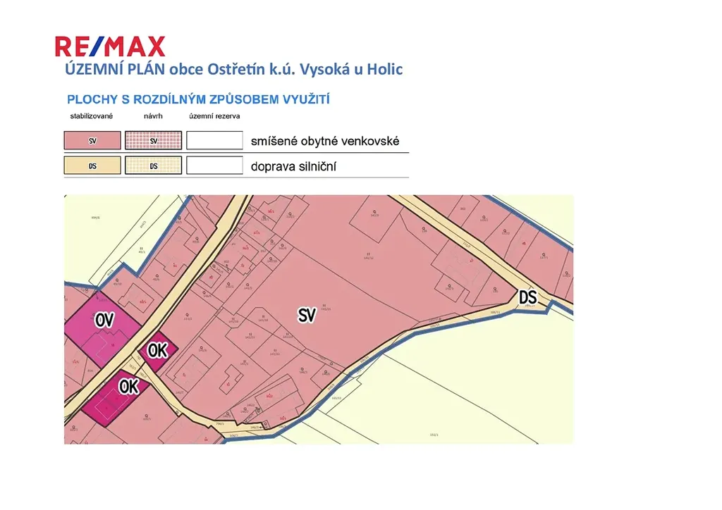 o Je vyhotoven geometrický plán dělící pozemek na 3 stavební parcely 1186 m², 1111 m², 2238 m² a přístupovou komunikaci,