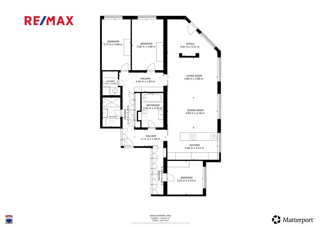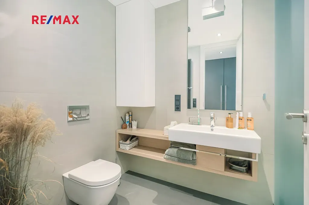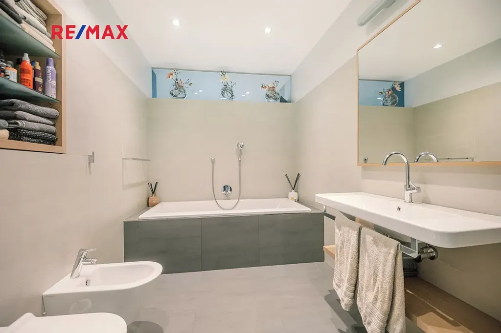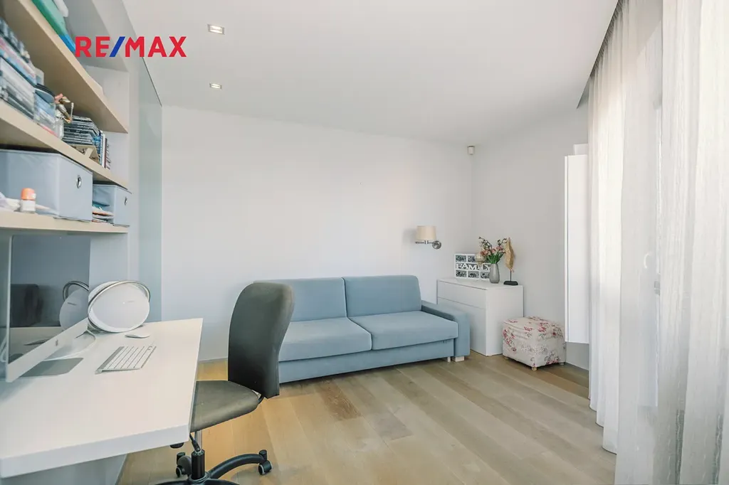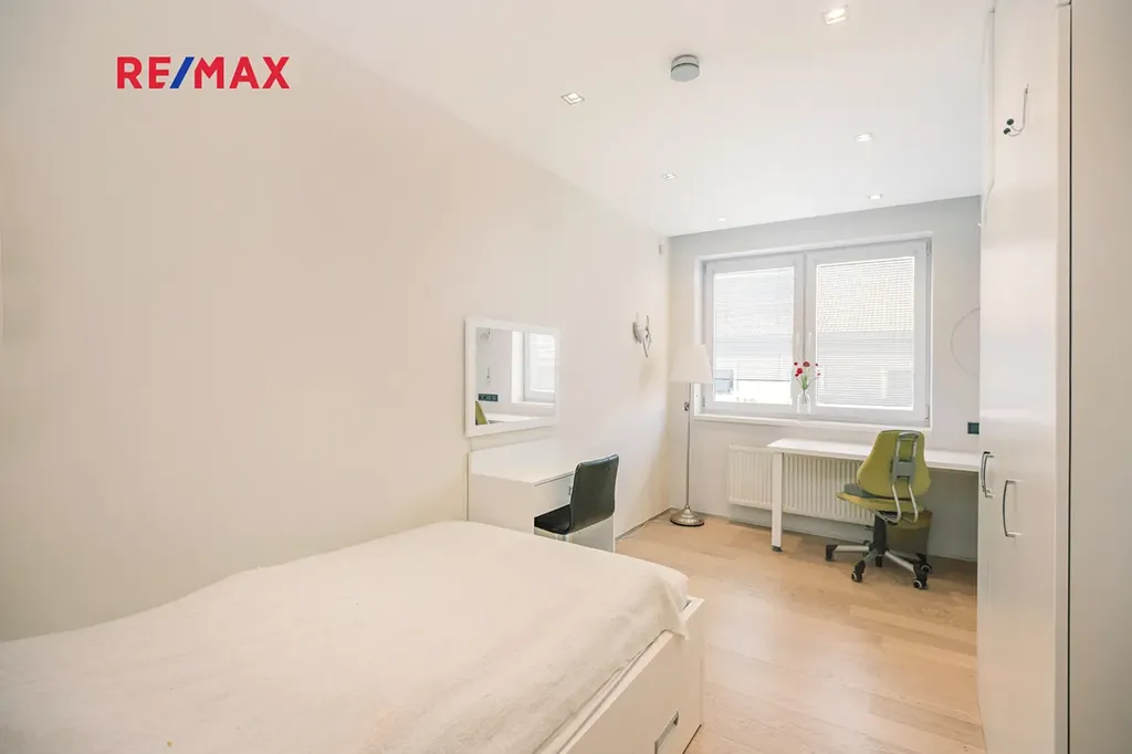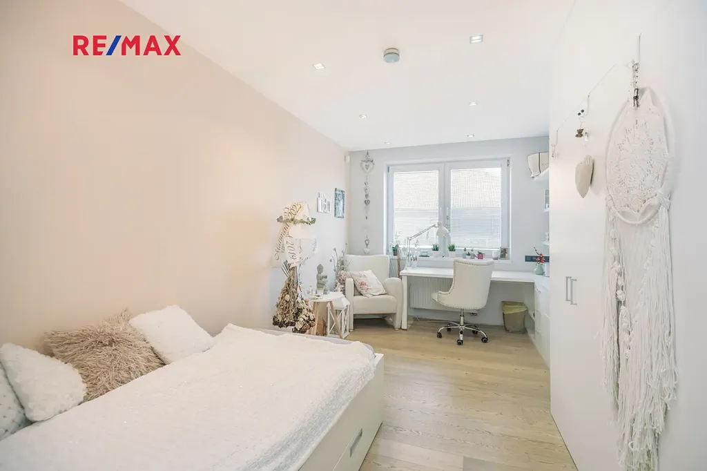 Byt dále nabízí tři samostatné neprůchozí pokoje, sloužící jako ložnice a dětské pokoje, dvě koupelny s toaletou, prádelnu a technickou místnost. Součástí bytu balkon a terasa.