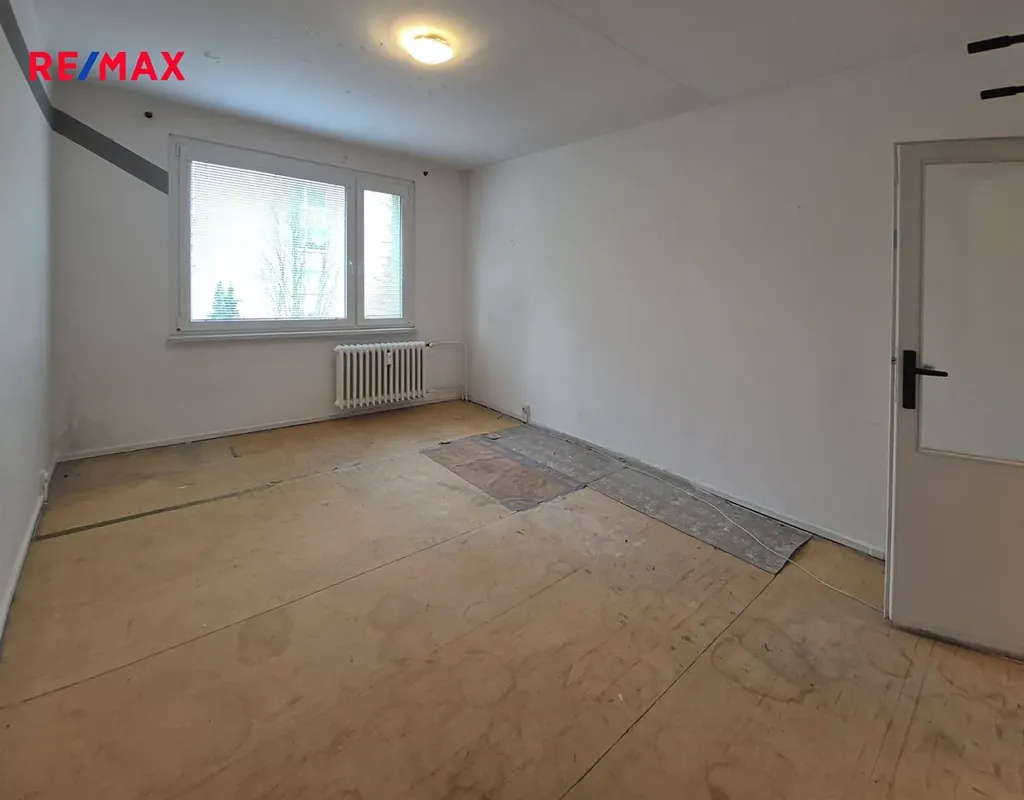 Byt je v původním stavu, má pouze nová plastová okna. Bytové jádro je původní, koupelna je obložena. Byt se sestává z předsíně, koupelny, WC, komory, obývacího pokoje, ložnice, kuchyně a zasklené lodžie. Pokoje nejsou průchozí.