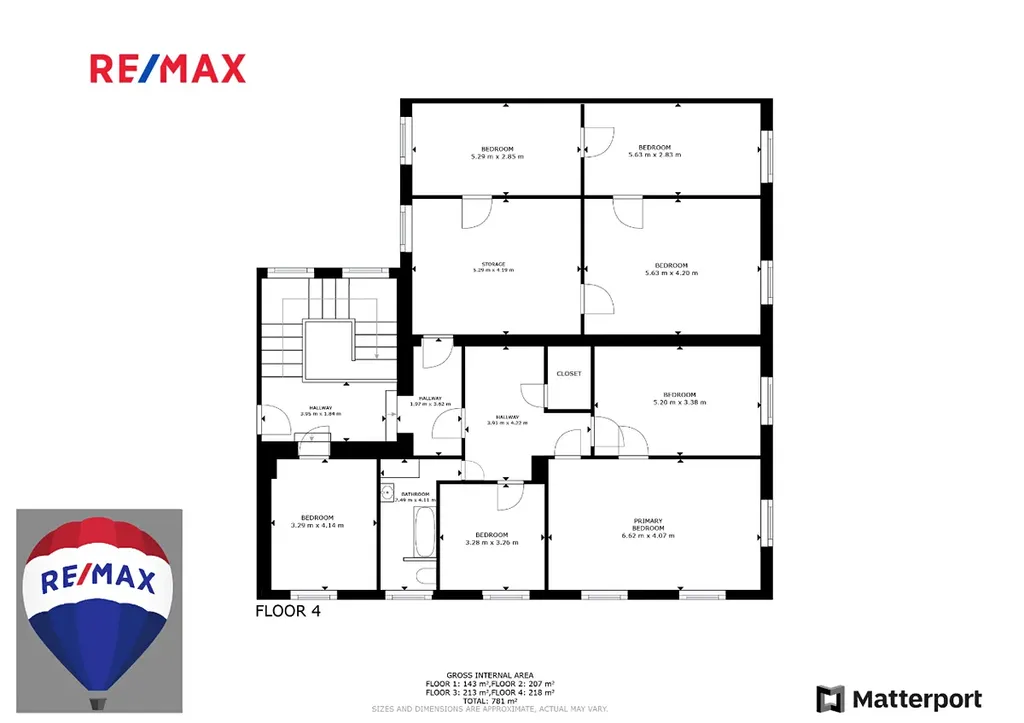 Celková užitná plocha nemovitosti cca 800 m², jedno podzemní a tři nadzemní patra.