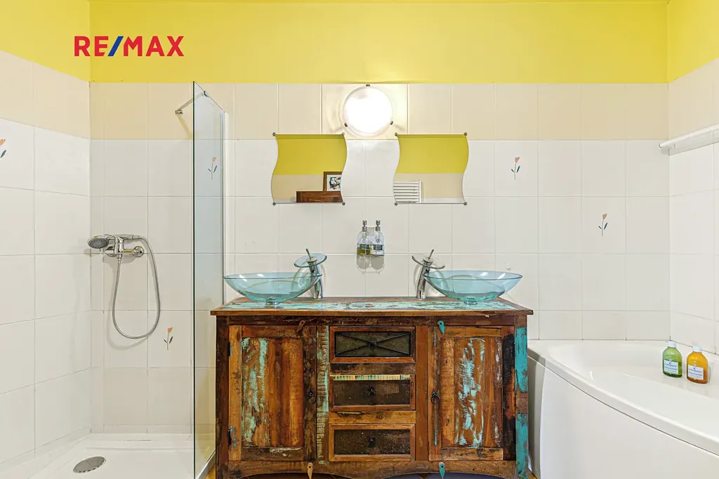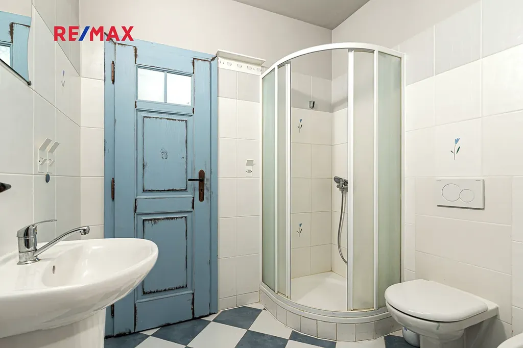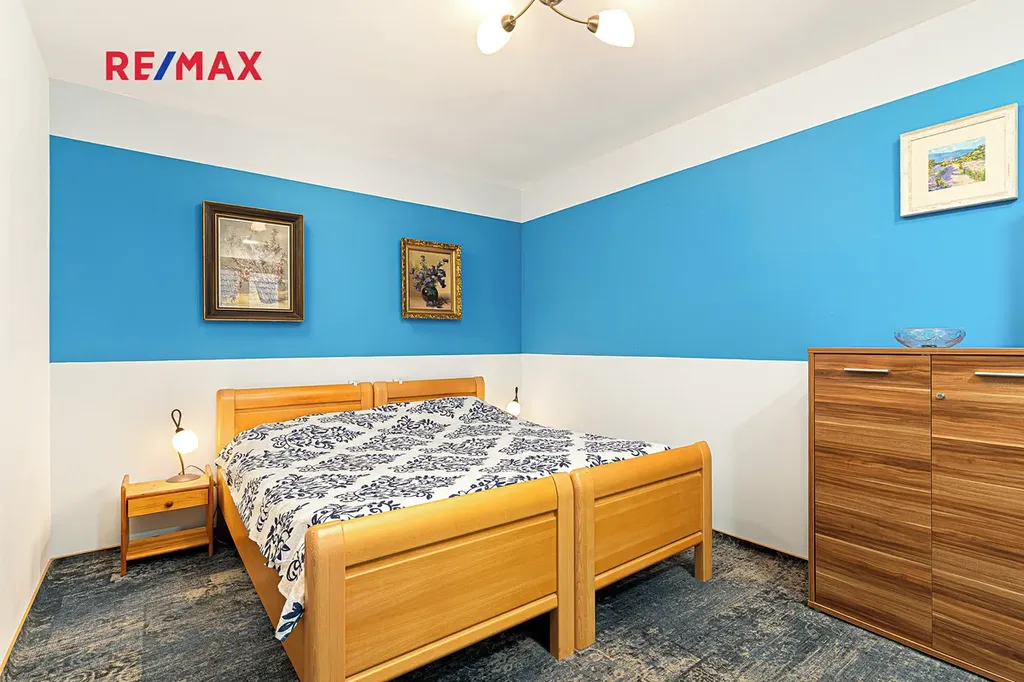 Další ložnice s vlastní koupelnou s WC je přístupná z chodby domu nebo také samostatným vchodem a vlastním zádveřím s úložným prostorem – ideální pro hosty, klienty, jako soukromé studio nebo provozovna.