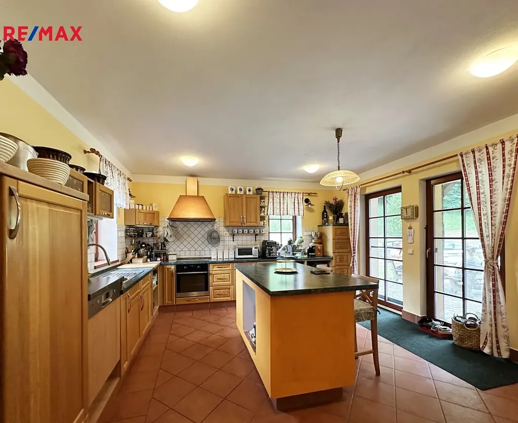Stavení je o dispozici 8 + 1, dvě koupelny, technické místnosti, sklep a garáž. Dále na pozemku stodola sloužící ke skladování.